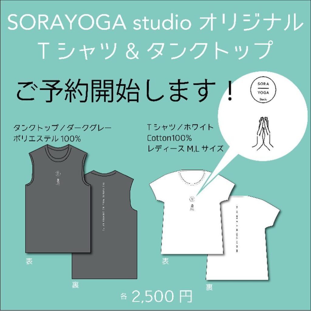 .新しく時代が明け今年はSORAYOGA studioが9月で3周年!!記念としてオリジナルTシャツとタンクトップを各型限定30枚先行予約を本日より開始します先…