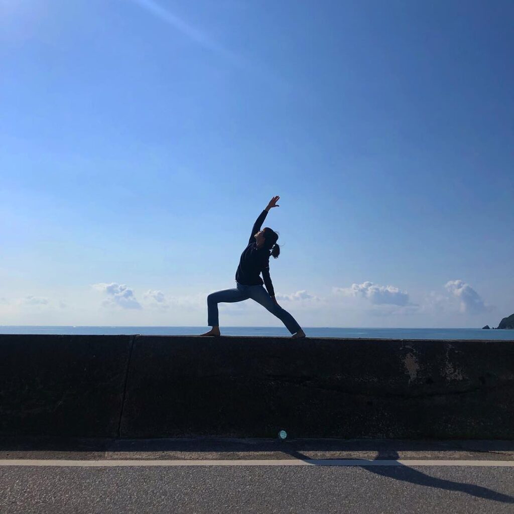 🏖骨盤幅しかないブロック壁の上でリバースウォーリアに挑戦!下は海!落ちたらドボン!自分を信じてこのポーズをとる内に意識を向けるyogaは自分に対しての自信や見方…