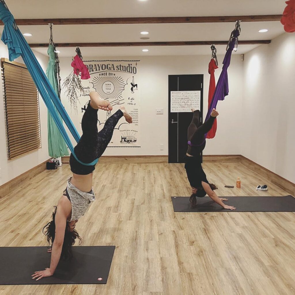 先日、ヨガ友のまいみちゃんとみのりちゃんが和歌山方面より車で2時間もかけてエアリアルヨガを受けに来てくれた@maimi_2 @_minoyogi_ わたしのレッ…