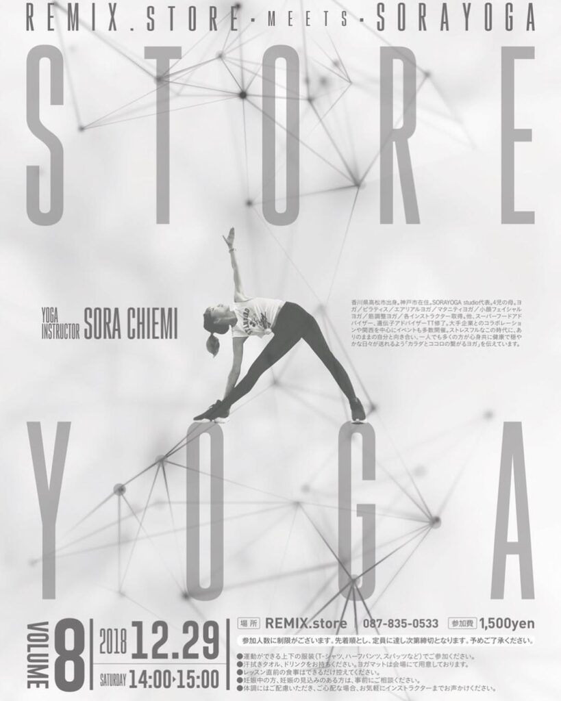 今年最後のお仕事は地元香川で!いつも帰省する度に開催させていただいている「Remix.store」さんにて年末スペシャルヨガレッスンします!香川の皆さん、年末で…