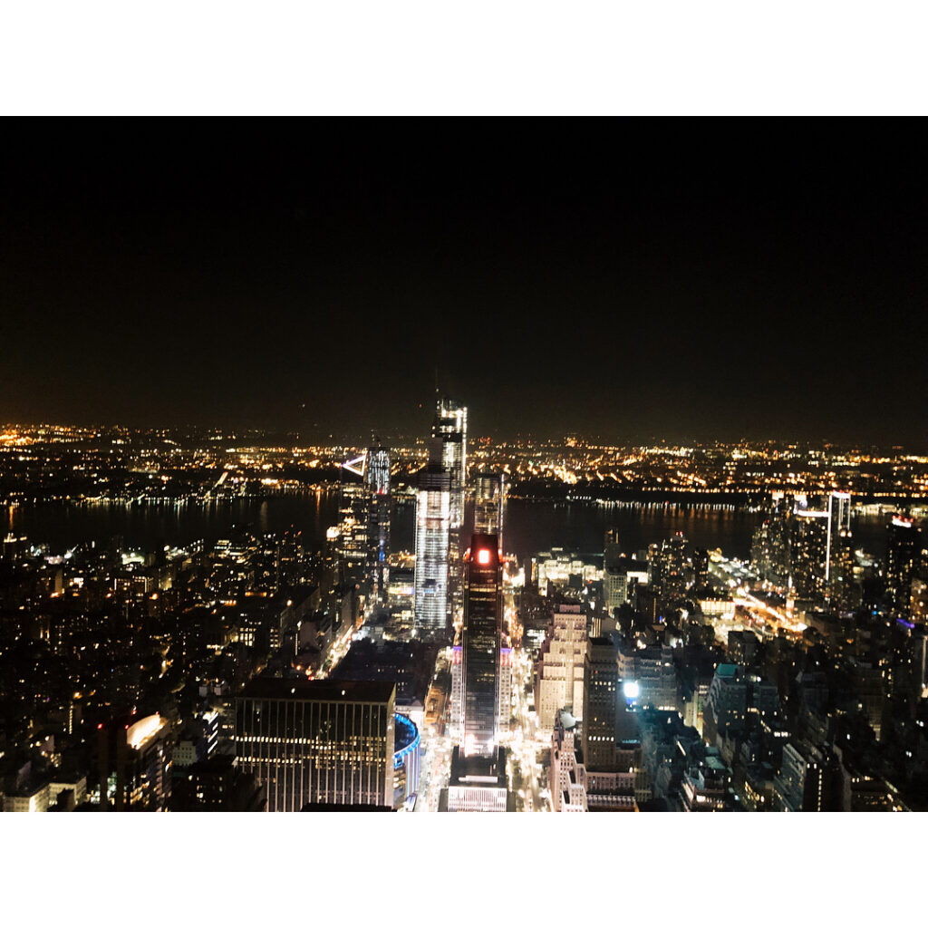 エンパイアステートビルからの夜景🏙ここは100階の外からの眺め扉を開けて外へ出ると息を呑むスカイツリーや東京タワーのようにガラスに遮られない光の渦を観ることがで…