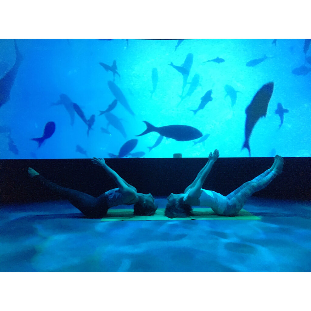 目の前の大きなスクリーンに映し出された神秘的な深海の世界映像、音、香り、自然をあやかのヨガでリアルにカラダで体感@ayaka800819 ・何回も撮り直したたく…