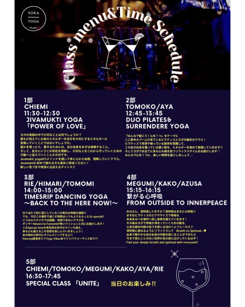 🌎SORAYOGA festa vol.2クラス紹介とタイムスケジュールです【日程/場所】10/6(日) 神戸元町ニューラフレア神戸市中央区明石町18-2 大協…