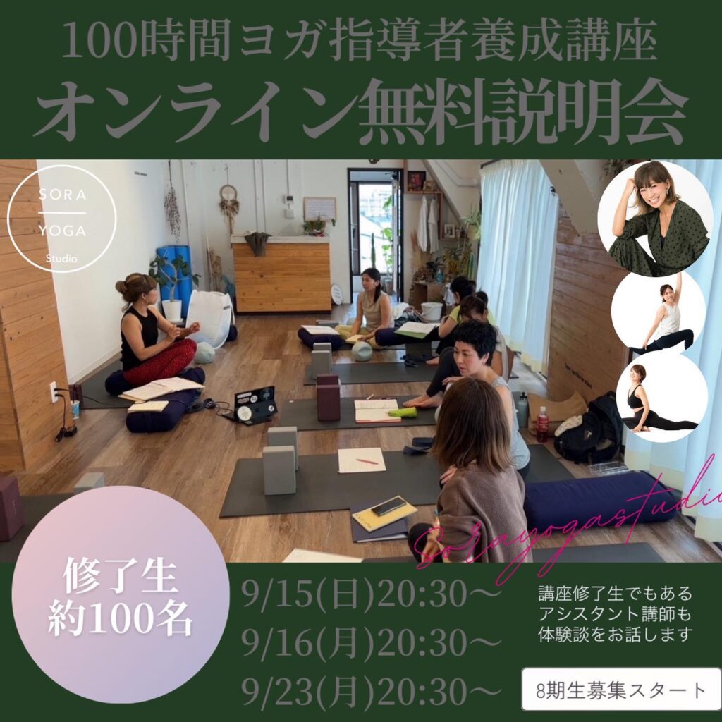 ./先日からお知らせを開始している「100時間ヨガ指導者養成講座」9/15(日)20:30〜9/16(月)20:30〜9/23(月)20:30〜オンライン無料説…