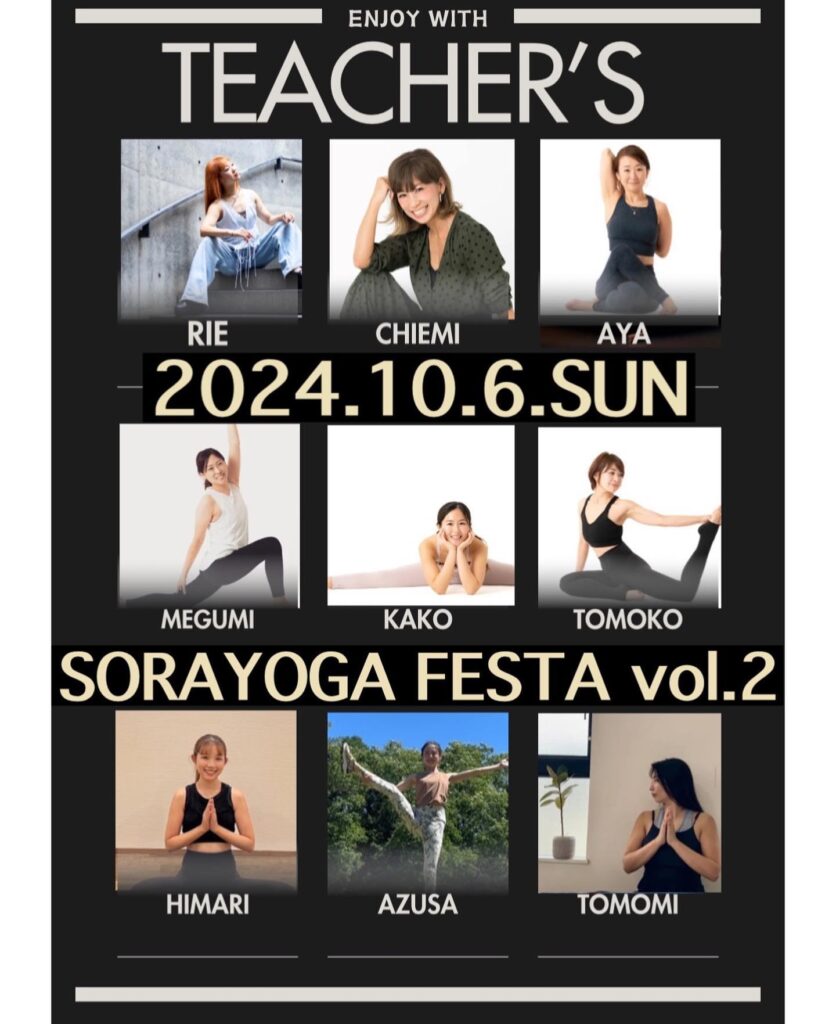10/6(日)SORAYOGA FESTA vol.2に登壇する先生達9名です🥂私達はそれぞれチームになり5つのクラスをお届けします!🧘🏽♀️🧘🏾@chiem…