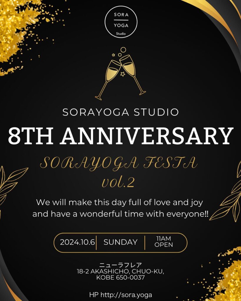 皆さんおはようございますSORAYOGA studioは9月21日で8周年を迎えます!いつも、本当にありがとうございます。今年も日頃の感謝の気持ちを込めてSOR…