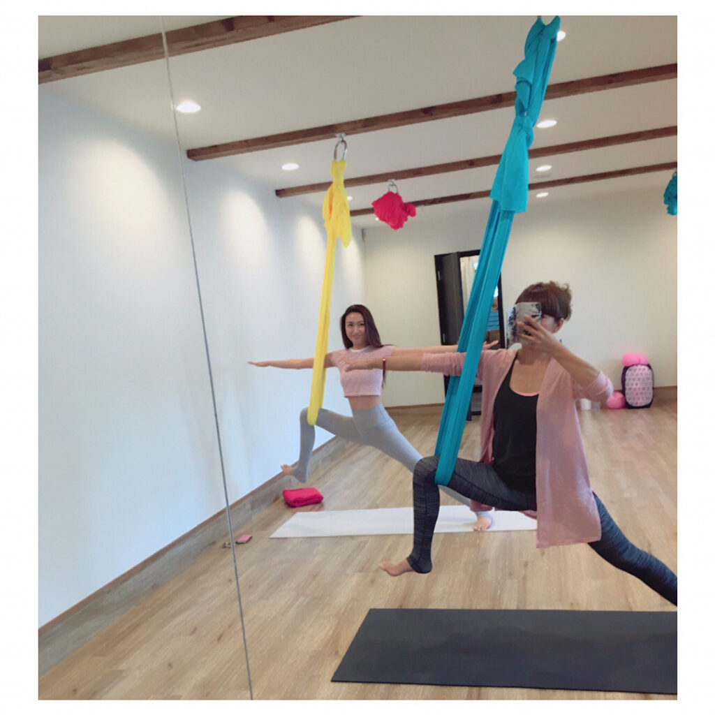 ・本日のエアリアルヨガレッスンえみちゃんご来店@emilea_yoga ・ハッピーオーラ満開のえみちゃん・まじめにヨガトークとふざけた話とのギャップで今日も笑い…