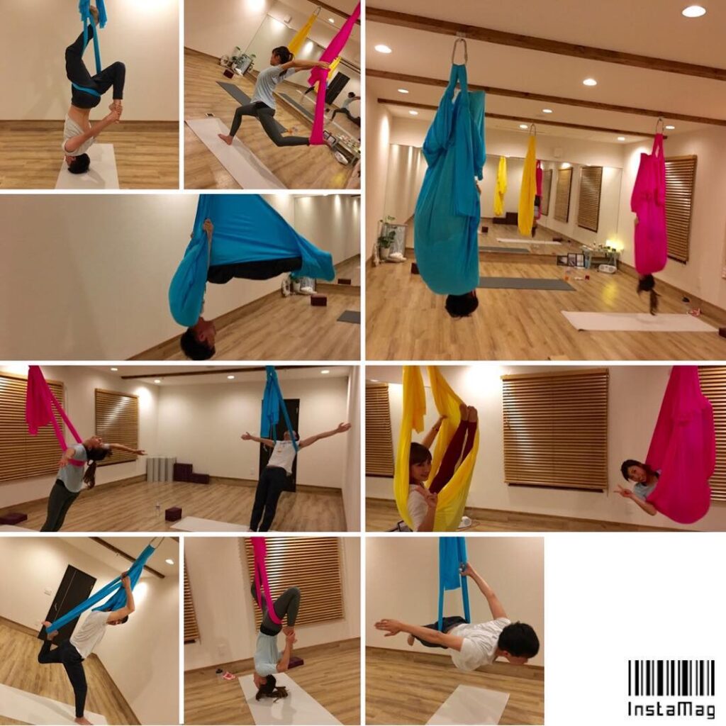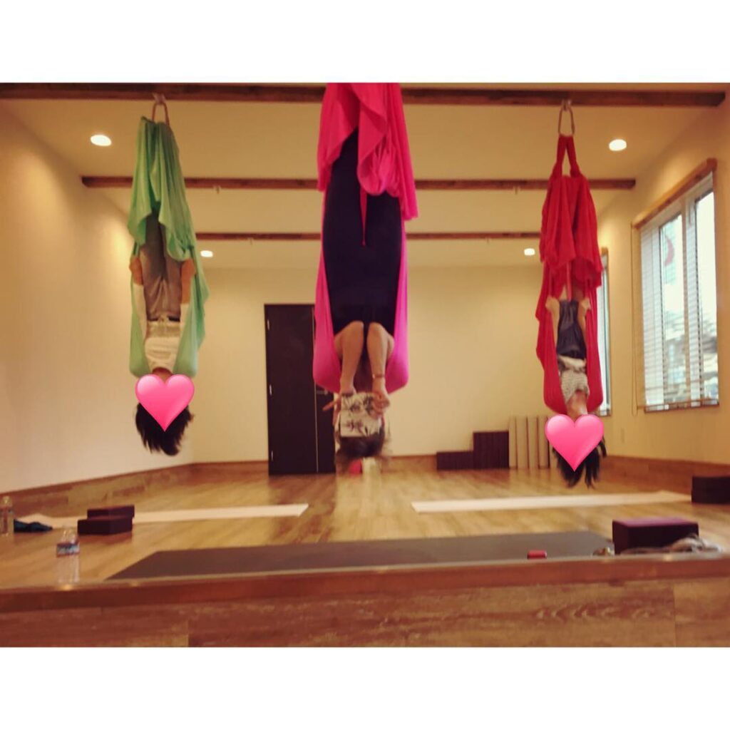 コウモリしたときは顔にスタンプ必須です️️️・来週からキッズエアリアルヨガクラススタートです・・#sorayoga #ヨガ #yogalife #aerialy…