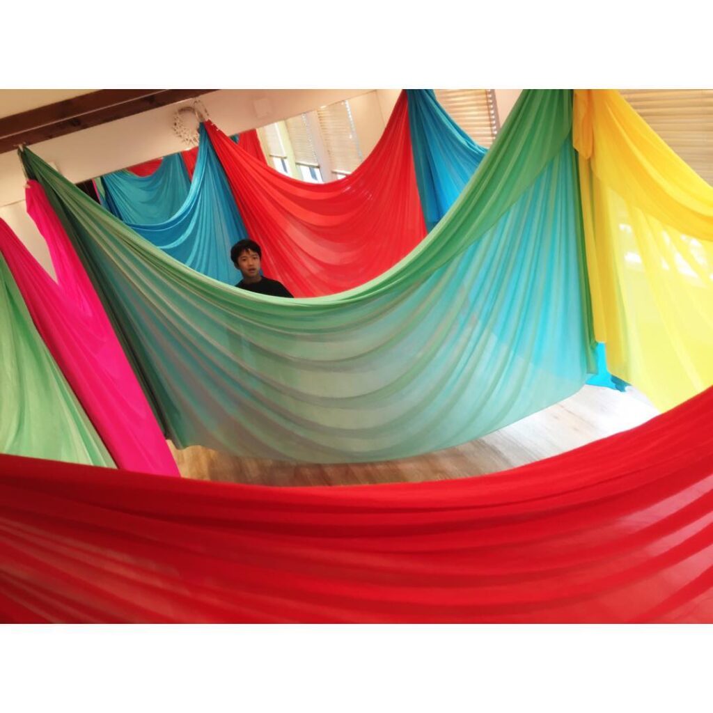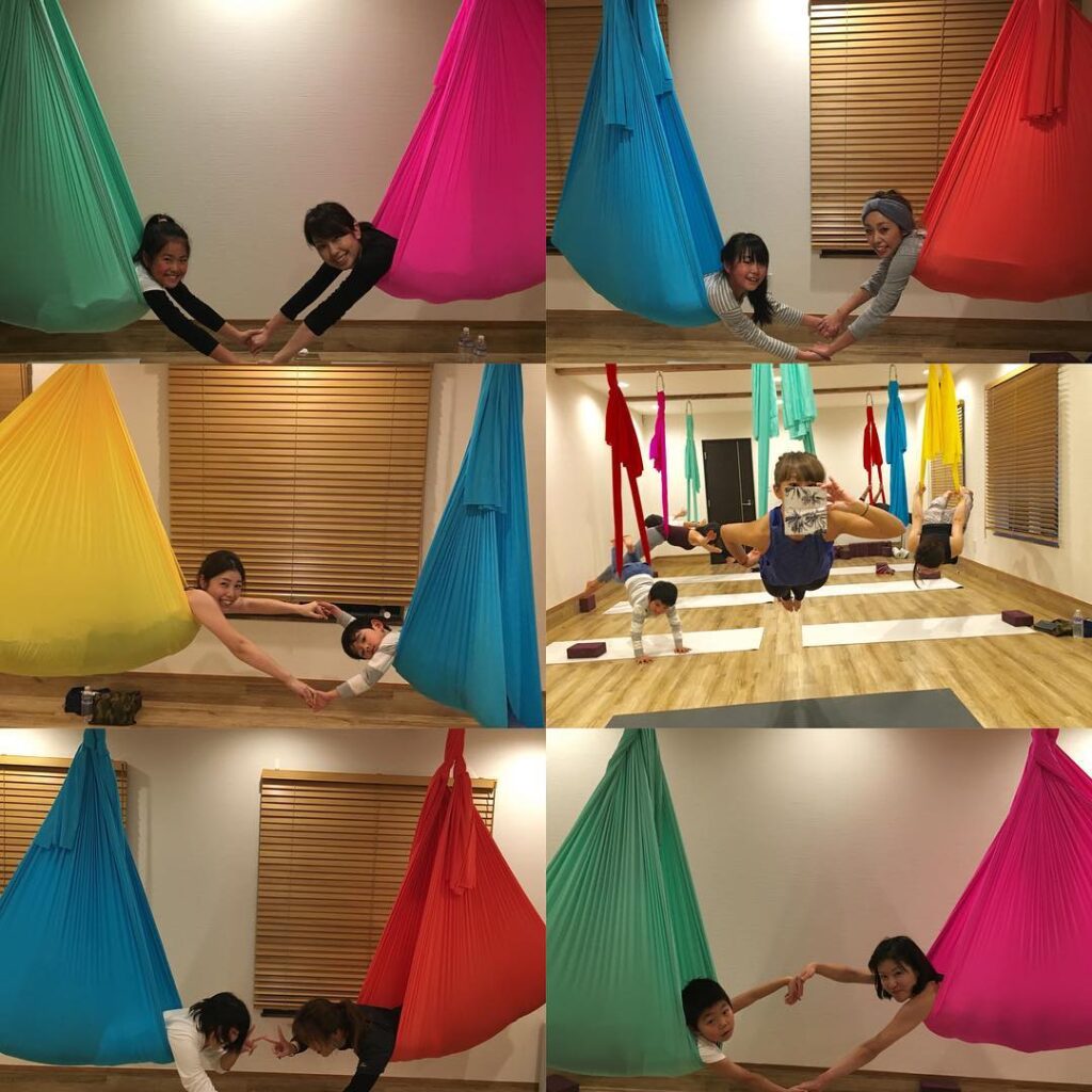 本日親子エアリアルヨガWS無事に終了エアリアルヨガを通して子供たちとあそんだよ〜親子エアリアルはまた開催します!布を使ってお子様と遊びましょーっ#sorayog…