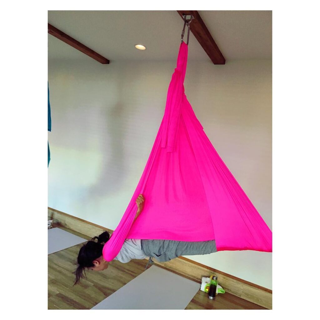 今からエアリアルのレッスン〜いい汗が出ます!!エアリアルして内臓活性化&デトックス!!#sorayoga #ヨガ教室#aerialyogateacher…