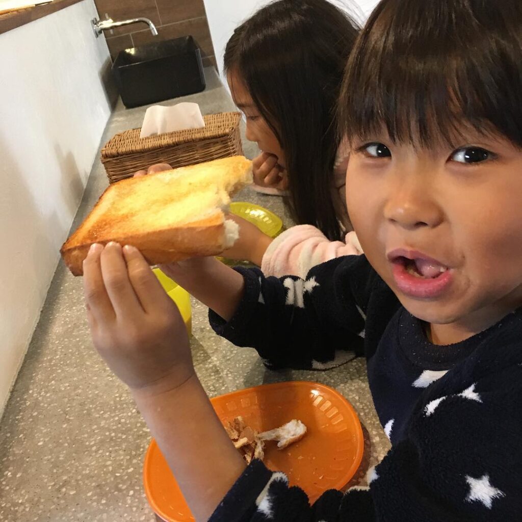 弁当を作らなくていい朝が嬉しいこの2人とまったり️#休日#あさごはん#バターシュガートースト#毎日これ#それと目玉焼き 本日のレッスン10:00〜エアリアルヨガ…