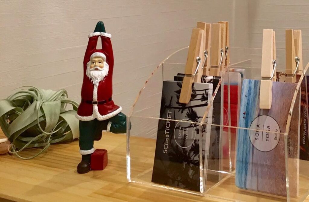 我が家の新入りヨガサンタさん🏻受付にいるよサンタもヨガする時代#ヨガサンタ #santaclaus #ヴリクシャアーサナ #立木のポーズ #treepose #…