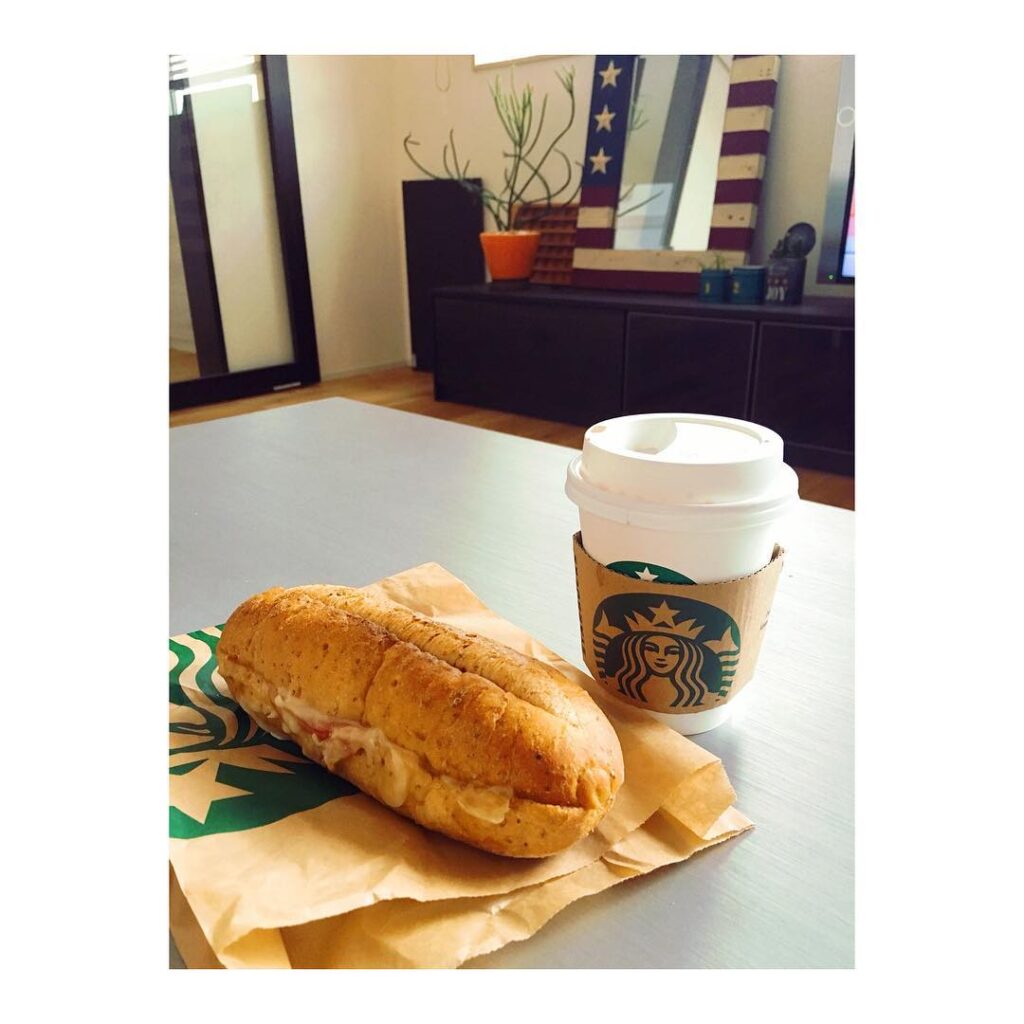 久々ジャザにも行きたいけど午前中はたまった家事と事務仕事をしなければです#朝ごはん#スタバ#ハムアンドマリボーチーズ#カフェモカ#洗濯物の山の横本日のレッスン1…
