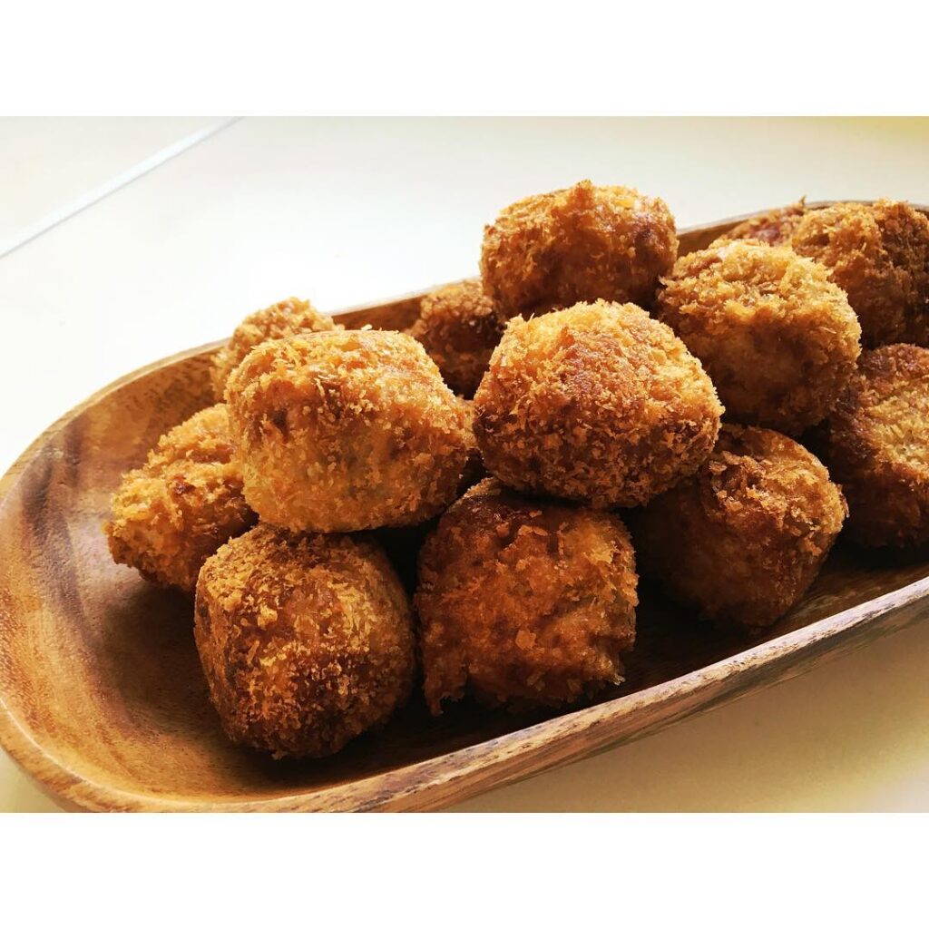 里芋と豚肉のコロッケ夏、水分の奪われた身体に元気を取り戻す食材の1つ、里芋!茹でて、つぶして、丸めて、揚げて時間かかるー#月曜朝はダイエットヨガ #下半身強化#…