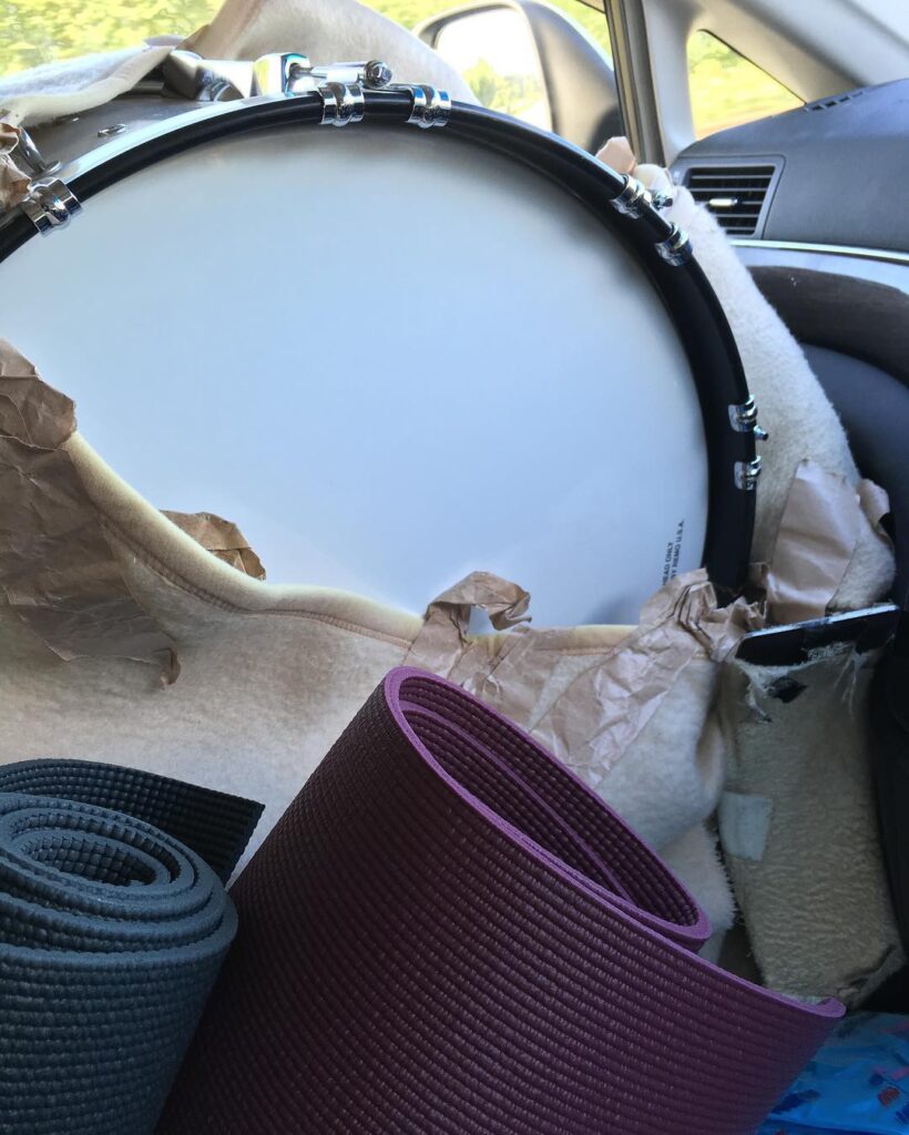 助手席に大太鼓子供たちの熱い夏はまだ終わってない!決戦まであと10日!#吹奏楽マーチングコンクール#運び屋に徹する#この後仕事ですけど