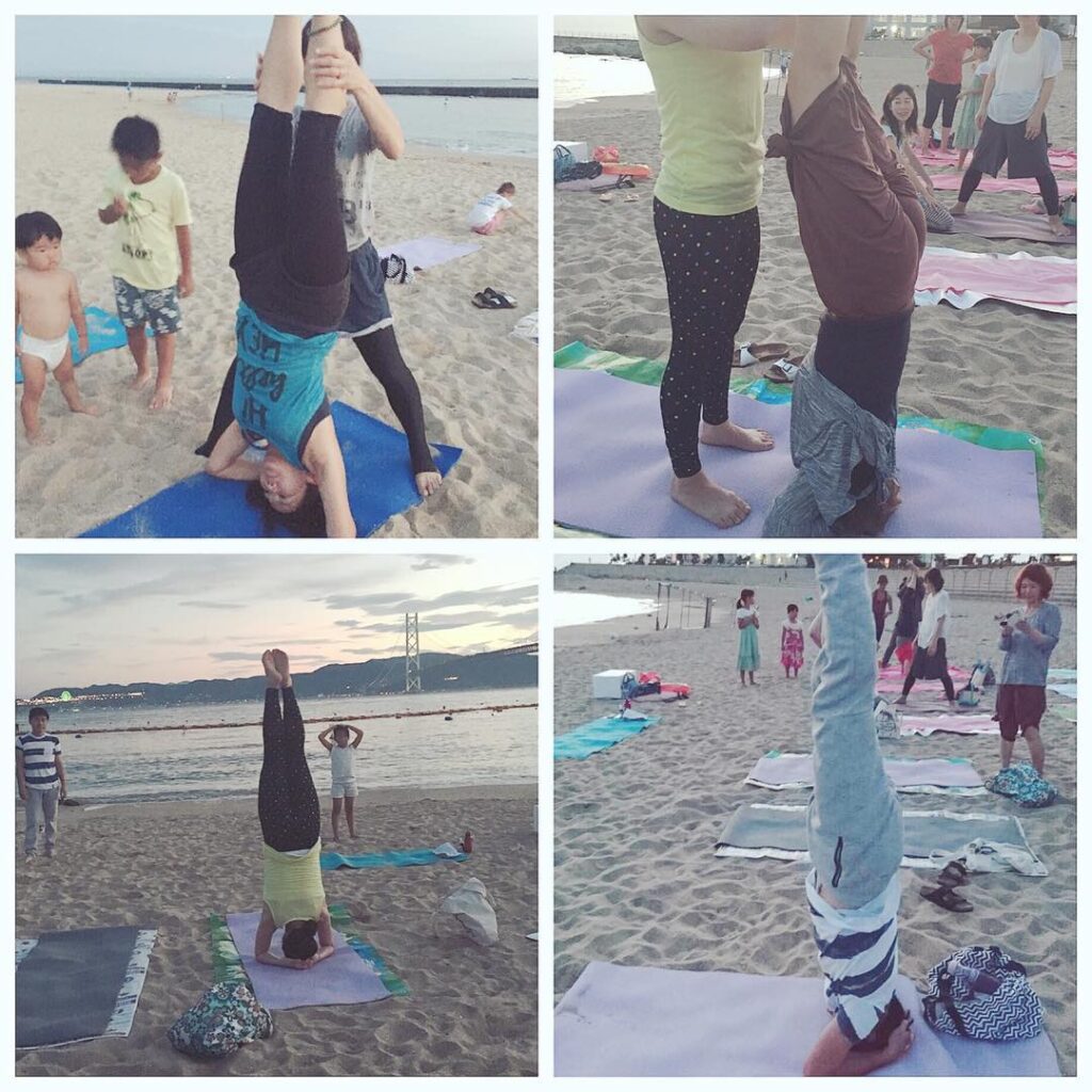 さがった内臓を定位置に戻す!みんなで三点倒立の練習#アンチエイジング#血液循環アップ#むくみ解消#肩凝り腰痛改善#消化効率促進#ダイエット効果#ビーチヨガ#サン…