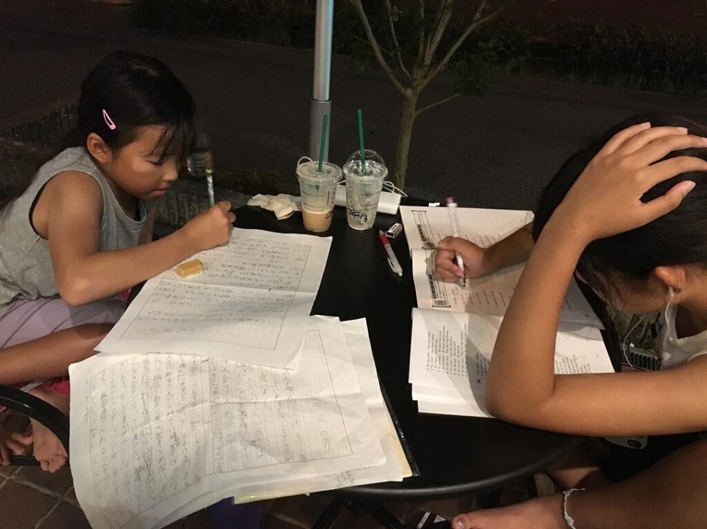 家にいても気が散るし、イライラするし、一向に進まないから、ここで仕上げるーーっ︎母監視のもと右の人やる気なしっ#夏休み #宿題 #読書感想文 #夏休み最大の難関…