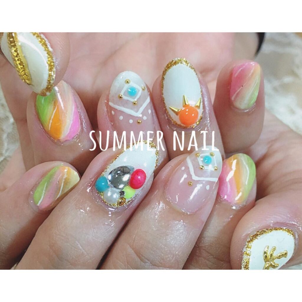 夏ネイル〜〜️あ〜かわいいー♡#summernail #夏 #お客様ネイル #夜顔