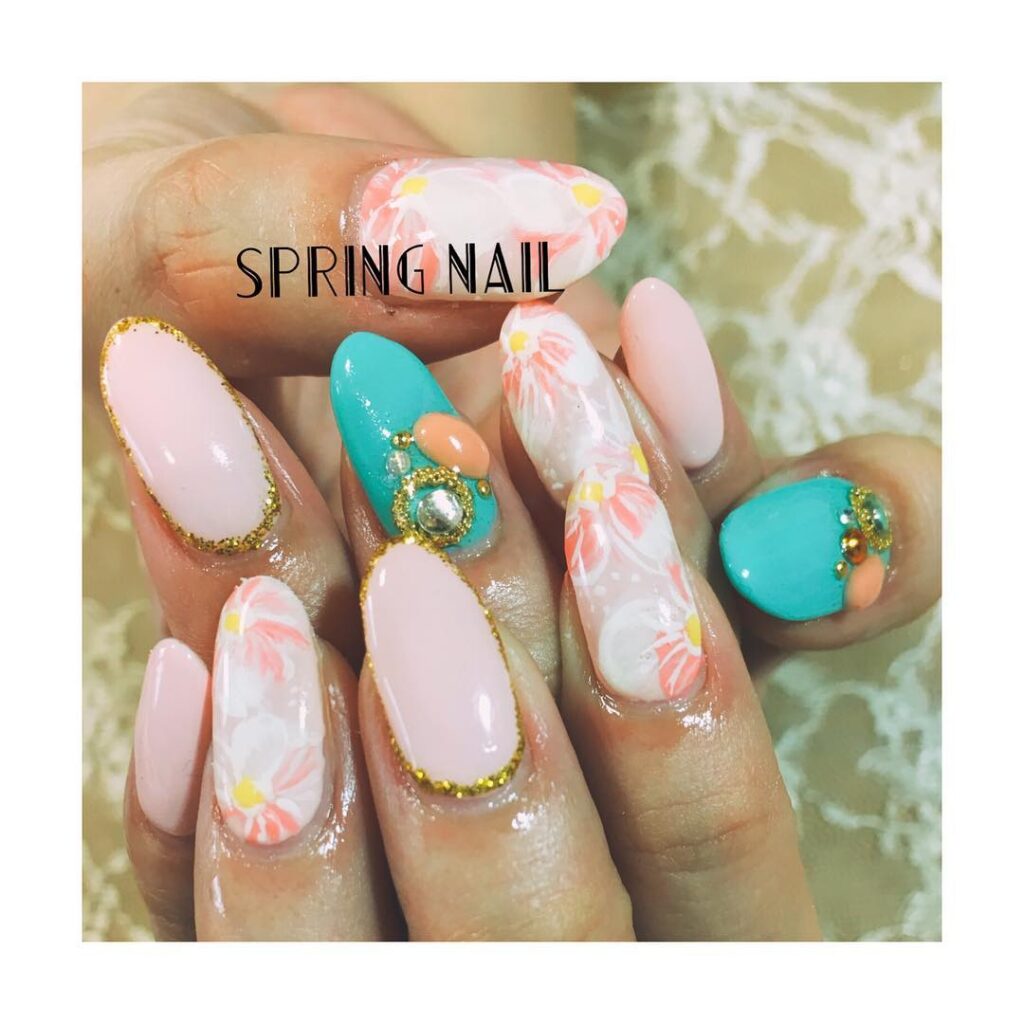 昨日のお客様。さっそく春ネイル#nail #jelnail #spring #nailroom #自宅サロン #ヨガの合間に #また肩凝る