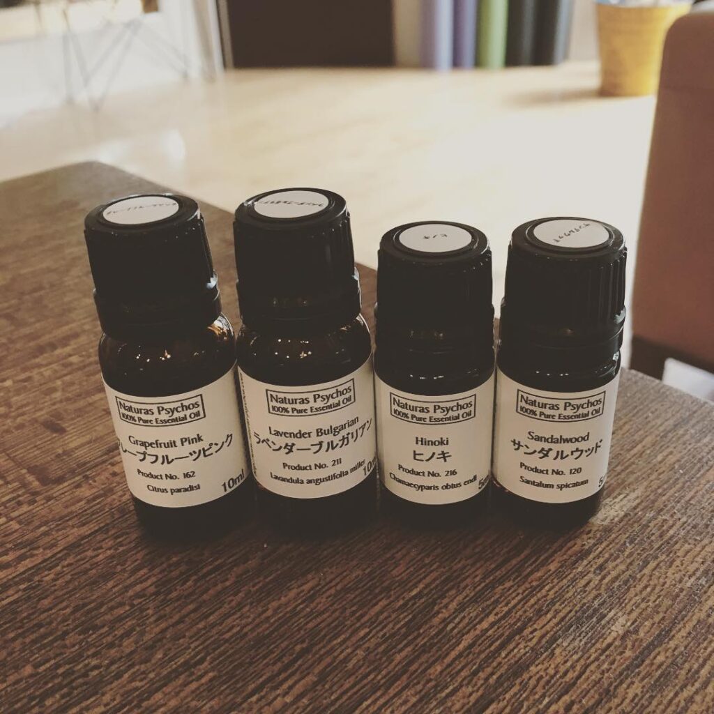 アロマオイル届いた〜〜#yoga#ヒノキ#サンダルウッド#グレープフルーツ#ラベンダー#精油#レッスンで使お