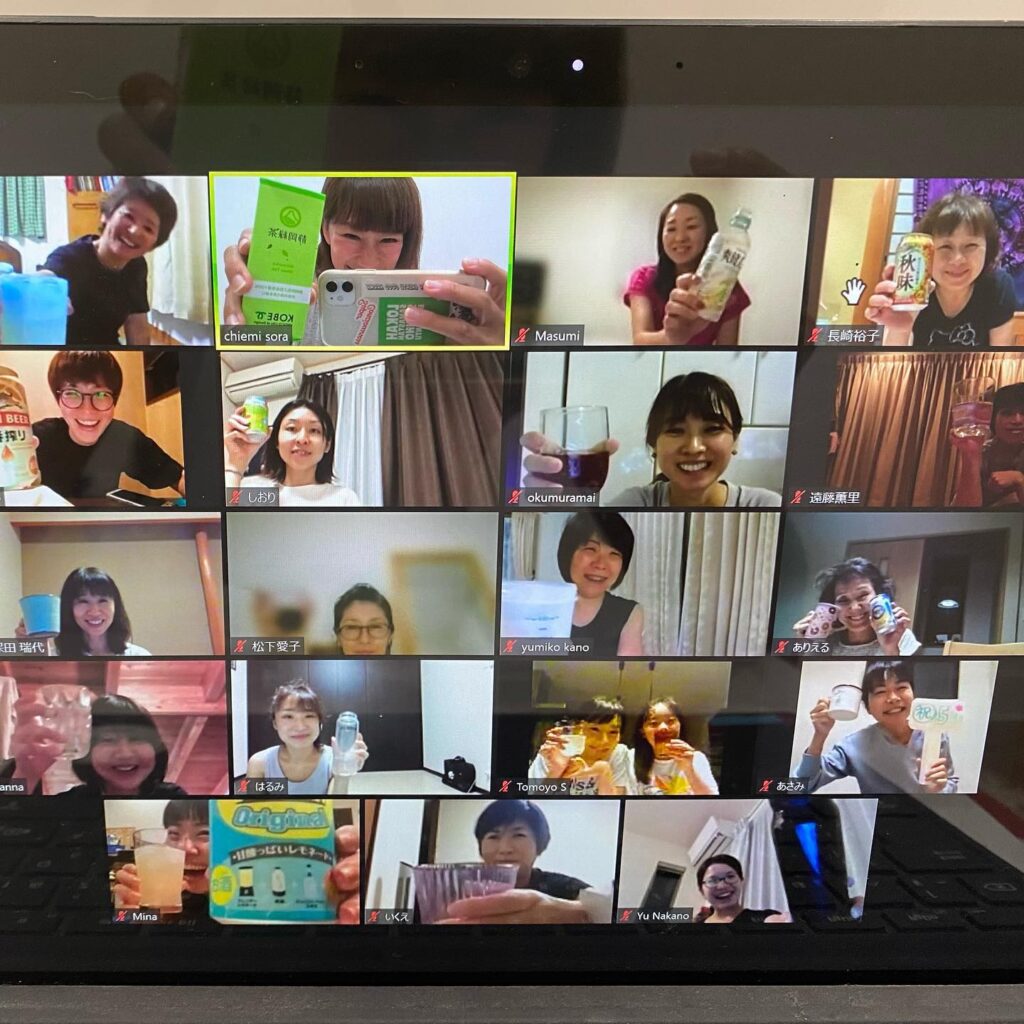 🥂🥂🥂ゆるっとヨガ哲学の超真面目な話してからのみんなでオンラインお祝いビールに酎ハイにカクテル出てくる出てくるみんなと乾杯できてよかった!ありがとう〜!️kon…