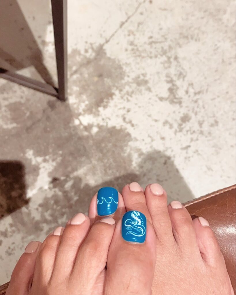 夏ってことで足先に気合いを入れに、@703nail のところへ親指は最近お気にのJivamuktiロゴその他の指はヌーディーカラー🤍チャトゥランガもアップドック…