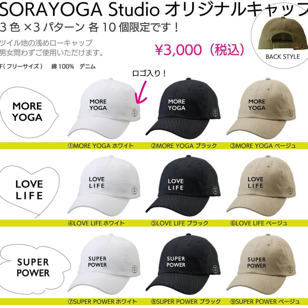 【SORAYOGA apparel部より】生徒さん達のリクエストよりようやく形になりました!SORAYOGAキャップ🧢今年のソラヨガ運動会(←またやる気)ヒ…