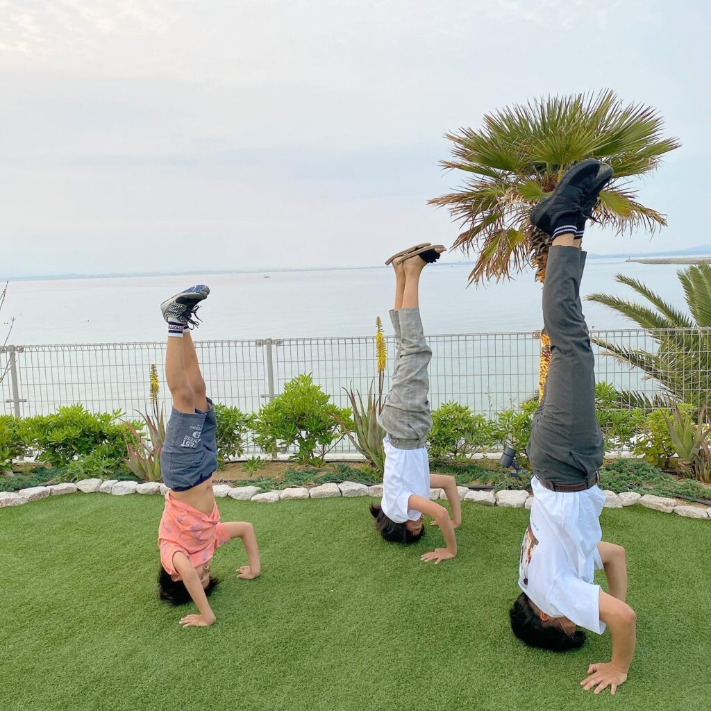 背の順で三点倒立三人倒立するから写真撮って!てりゅう(笑)兄弟遊びがうまくなったもんだ🤸🏽♂️🤸🏽♂️🤸🏽♂️#何度もチャレンジ#ヨガ兄弟#そ…