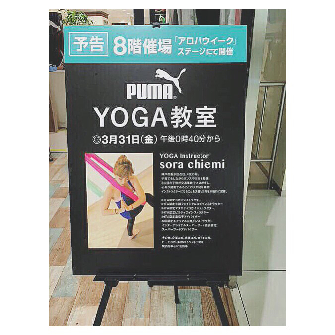 ・いよいよ明日ですアロハウィークは昨日から始まっております!フラダンスチームがたくさん出演しますよ・わたしはそのフラとフラとの間、ハーフタイムみたいな感じでヨガのミニレッスンをします・可愛いハワイグッズがいっぱいです皆さん、よかったら遊びに来てくださーい・・今日も春の暖かさをひしひしと感じる️・・#sorayoga #puma #pumayoga #pumainstructer #pumafashion #yoga #ヨガ #ヨギー#ヨギーニ#ヨガ教室 #ヨガインストラクター #ミニレッスン #上半身メイン #肩凝り解消 #肩甲骨セラピー #リンパ流し#アロハウィーク #aloha #hawai #フラ #ハワイ行きたいー #阪神百貨店 #osaka本日のレッスン19:30〜リラックスヨガ21:00〜メンズヨガ