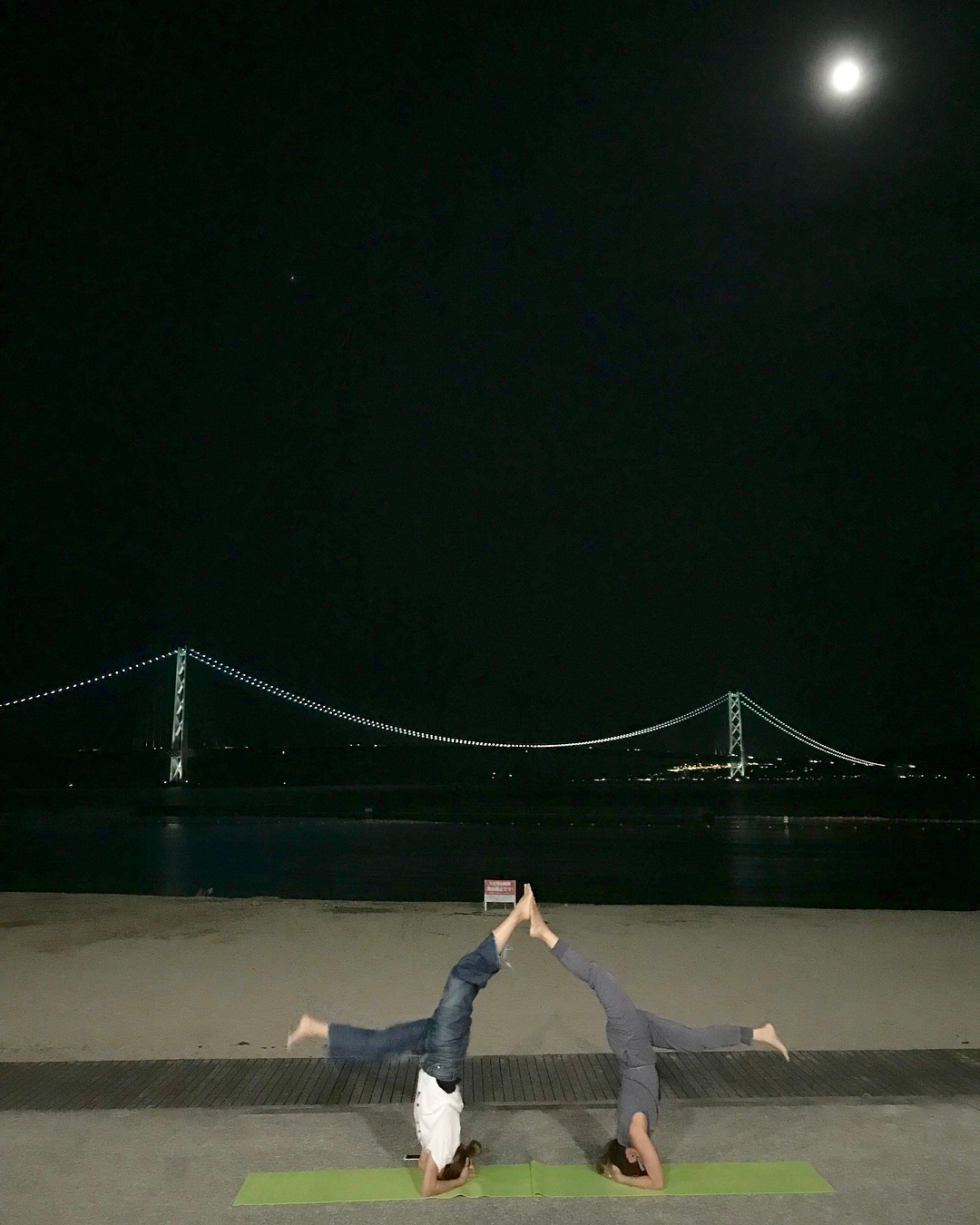私達明石海峡大橋に見えません?そらさん!三点倒立できるようになったんです!ってゆうなちゃん🏻🏻昨夜見せてもらいました!彼女なりに心地よくバランスのとれた身体と心の感覚があると身体に集中している時間が楽しい!って嬉しそうに話してくれる顔が可愛かったなぁー・・ヨガをしているからってこうあるべきだ!って執着とかいらないですコンビニ食も買うしカップラーメンも食べるし夜更かしもするし腹立って不平不満も言うしめっちゃヨガ練習する時もあるし全く練習しない時もあるしヨガしてるからナチュラルでいないととか綺麗な言葉使いしないと、とか全くないです笑#人間だもの・・ヨガも同じ完璧を追い求めずに自分のペースで自分なりのヨガをすることすると、ある日、あ!これやん!って気づくことがあります#足るを知ること・・自分がいいと思うことを選んでいく生き方がいいですね・・#ヨガのある生活 #ヨギーニ会 #sorayoga#yoga#yogini#yogalife #どこでもヨガる#知足#サントーシャ#橋#海#星#自然#夜景スポット#もうすぐ満月#シルシャーサナ #三点倒立