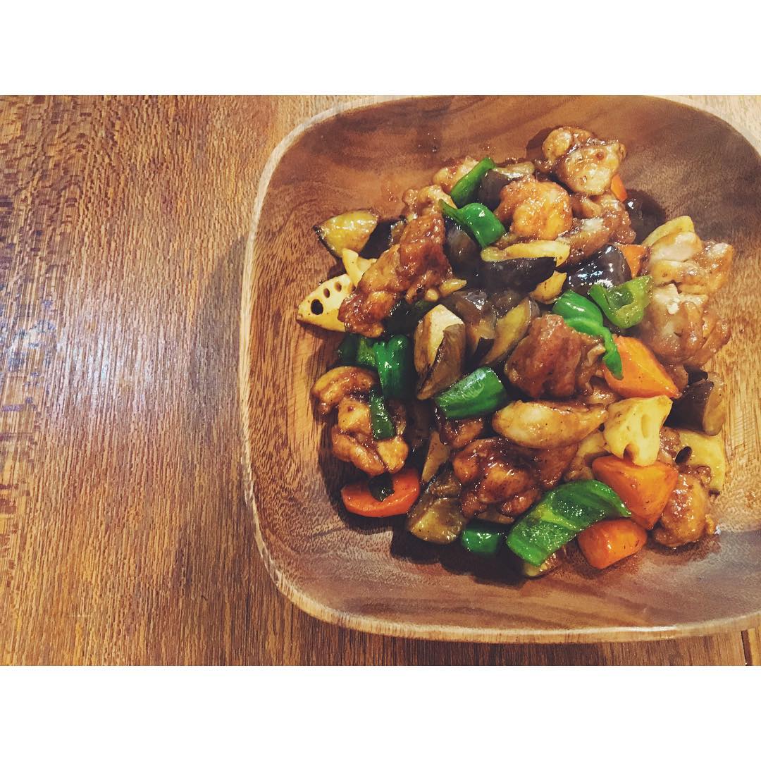 酢鶏と野菜のゴロゴロ炒め。#晩御飯#酢豚より酢鶏#友達の写真の撮り方マネてみた#画面の右に寄せる#大阪レッスン3本受けてクタクタ#明日はピラティス#身体づくり#もっと柔らかくなりたい