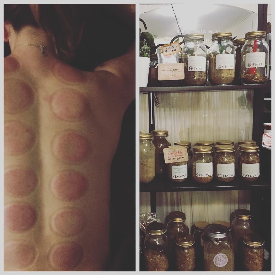 グロい画像ですいません。初体験︎よもぎ蒸ししてからのカッピング。スッキリ感がハンパない!!・#よもぎ蒸し 自分に合う薬草を選んで、半身浴の約30倍の#遠赤外線効果 で身体の芯から温め、体温を上げ、悪い毒素を排出します。・#カッピング 日本でゆうと吸い玉ですね。血液の流れが滞っていたり、疲労が溜まっていると、赤味が濃く残ります。・赤みは1週間程で消えるそうです。よもぎ蒸し&カッピング、これから通いつめます!#よもぎ蒸し #カッピング #デトックス #アンチエイジング #ダイエット #身体リセット #体脂肪率3パー落ちた