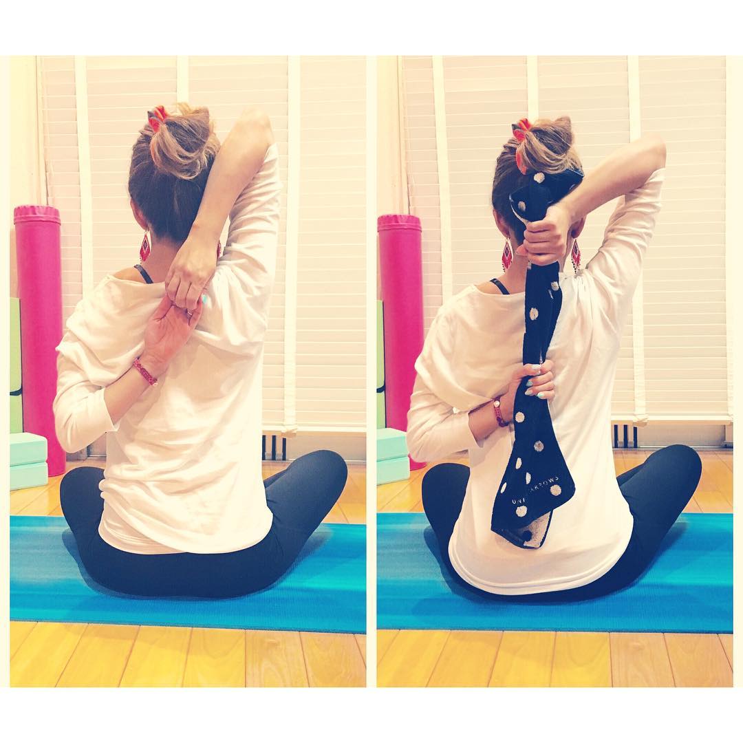 *牛面のポーズ月曜日から雨が続いていまひとつな天気。こんなときはこのポーズ#胸を広げる#肩甲骨引き寄せる#背中をしっかり伸ばす#手と手を繋ぐ#繋がらないときはタオルで#代謝up#二の腕引き締め#脂肪燃焼効果#肩こり解消ヨガ#呼吸をして1分間ホールド#スッキリ#ゴームカアーサナ#SORAYOGA#ヨガ教室 #初回500円 #ブログ久々up