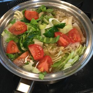 相方がすきやきを作ってくれています